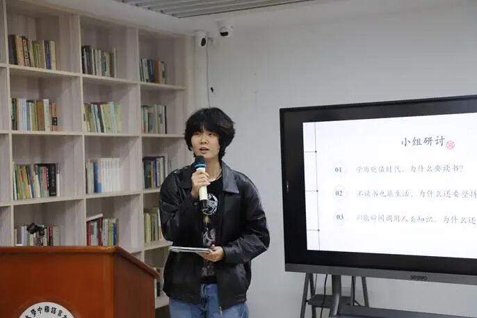 学员围绕“学历贬值时代,为什么要读书?”“AI能瞬间调用人类知识,为什么还要花时间读书?”等与阅读成长相关的6个话题,分组探讨读书的意义,思考读书本质。