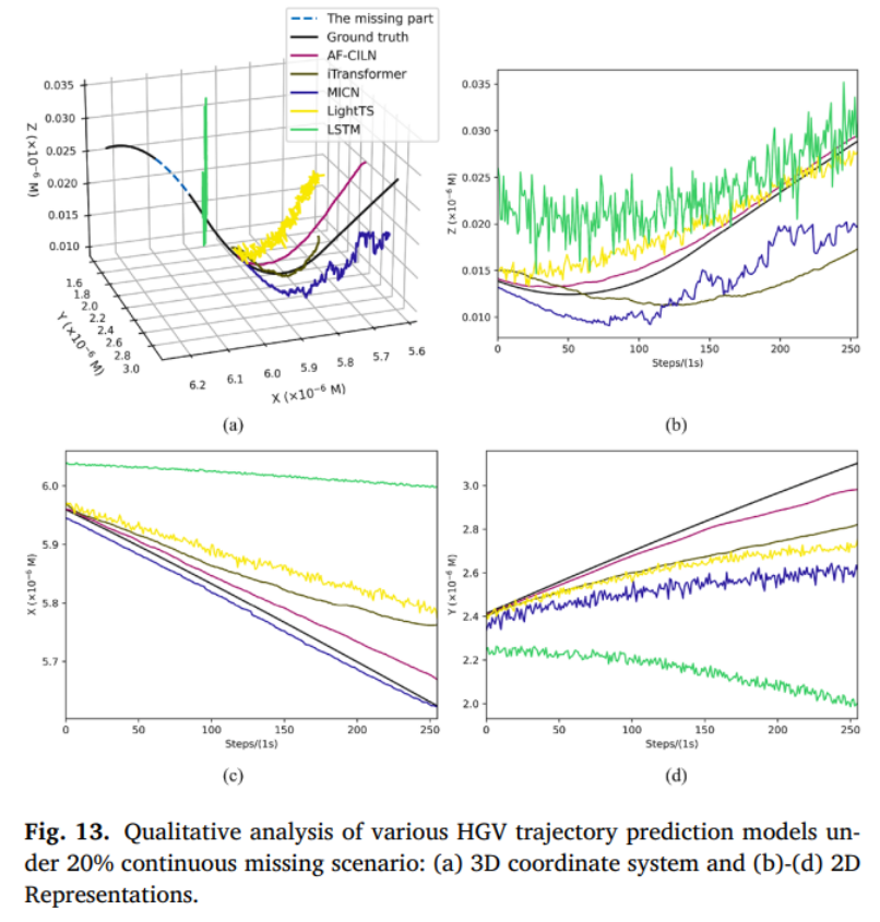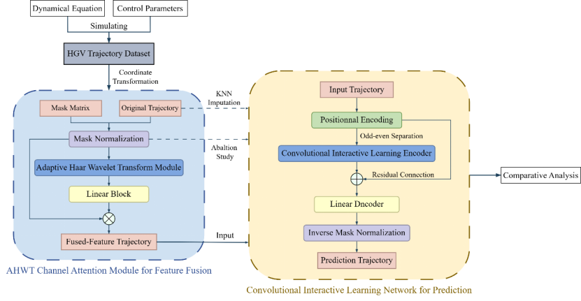 高超声速目标轨迹预测是空天智能感知与人工智能时序预测交叉领域的关键研究方向。在实际观测场景中,轨迹数据常因环境干扰、探测间断出现随机缺失与连续缺失情况,传统深度学习方法难以高效利用辅助特征,且依赖插值预处理易引入额外误差。针对上述难题,团队提出一种融合辅助特征的卷积交互学习网络(AF‑CILN),为数据缺失场景下的高超声速目标轨迹预测提供了新思路。